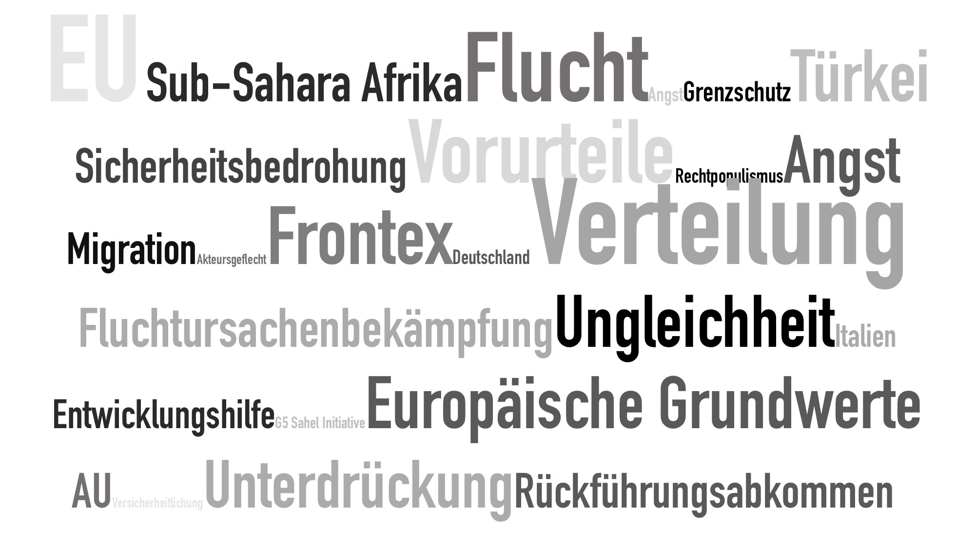Italien als Akteur im NexusAls Epizentrum der Migration ist Afrika in den letzten Jahren stark in den Fokus der italienischen Außenpolitik gerückt. In diesem Modul wird dargestellt, wie sich die zahlreichen Abkommen in der Sub-Sahara zur Reduzierung der Flüchtlingsströme in den Migrations-Sicherheits-Entwicklungs-Nexus einordnen lassen. Dabei werden auch aktuelle Entwicklungen in den Blick genommen. | Die EU als Akteur im NexusDieses Modul widmet sich der EU als Akteur im Migration-Development-Security Nexus. Dabei wird das Verhalten der EU im Nexus beobachtet, speziell in ihrer Beziehung zu Afrika und zur Afrikanischen Union (AU). Zunächst werden einleitend 'Versicherheitlichung' und der Nexus in Bezug auf die EU definiert. Desweiteren werden die europäischen Akteure der EU-AU Gipfel sowie der Einfluss, den Akteure und Nexus auf die EU-Afrika Beziehungen haben, betrachtet. | Die AU als Akteur im NexusIn diesem Modul soll die Afrikanische Union und deren Blick auf Migration, insbesondere in Verbindung mit Entwicklung, gelenkt werden. Gleichzeitig sollen die Perspektiven einzelner afrikanischer Länder auf diesen Sachverhalt und ihren – teilweise vorhandenen – Sicherheitsfokus als Herausforderung für die regionale Integration und vertiefte Zusammenarbeit der AU erarbeitet werden. | Querschnittsbetrachtung & ZusammenfassungIn diesem Modul bekommen Sie die Ergebnisse des Seminars auf einen Blick präsentiert. Dazu werden die Erkenntnisse zu den einzelnen Fallbeispielen kurz dargelegt und in vergleichende Darstellungen eingeordnet. Zum Schluss werden die Ergebnisse der kritischen Reflexion des Seminars dargestellt, in dessen Rahmen die hier vorliegenden Module erarbeitet wurden. | |